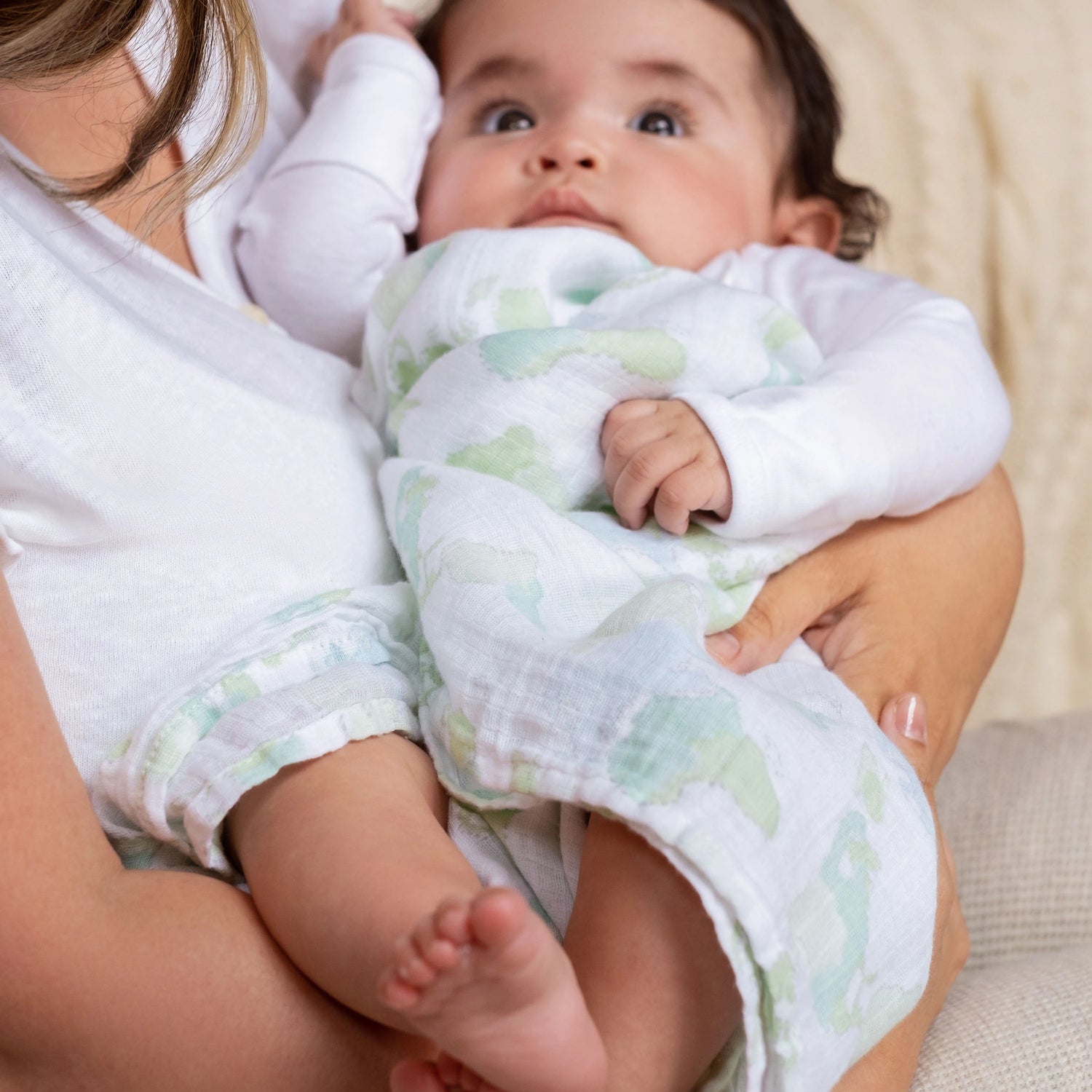 Includes: 4 x 112 cm x 112 cm / 44" x 44" 100% cotton muslin swaddle blankets