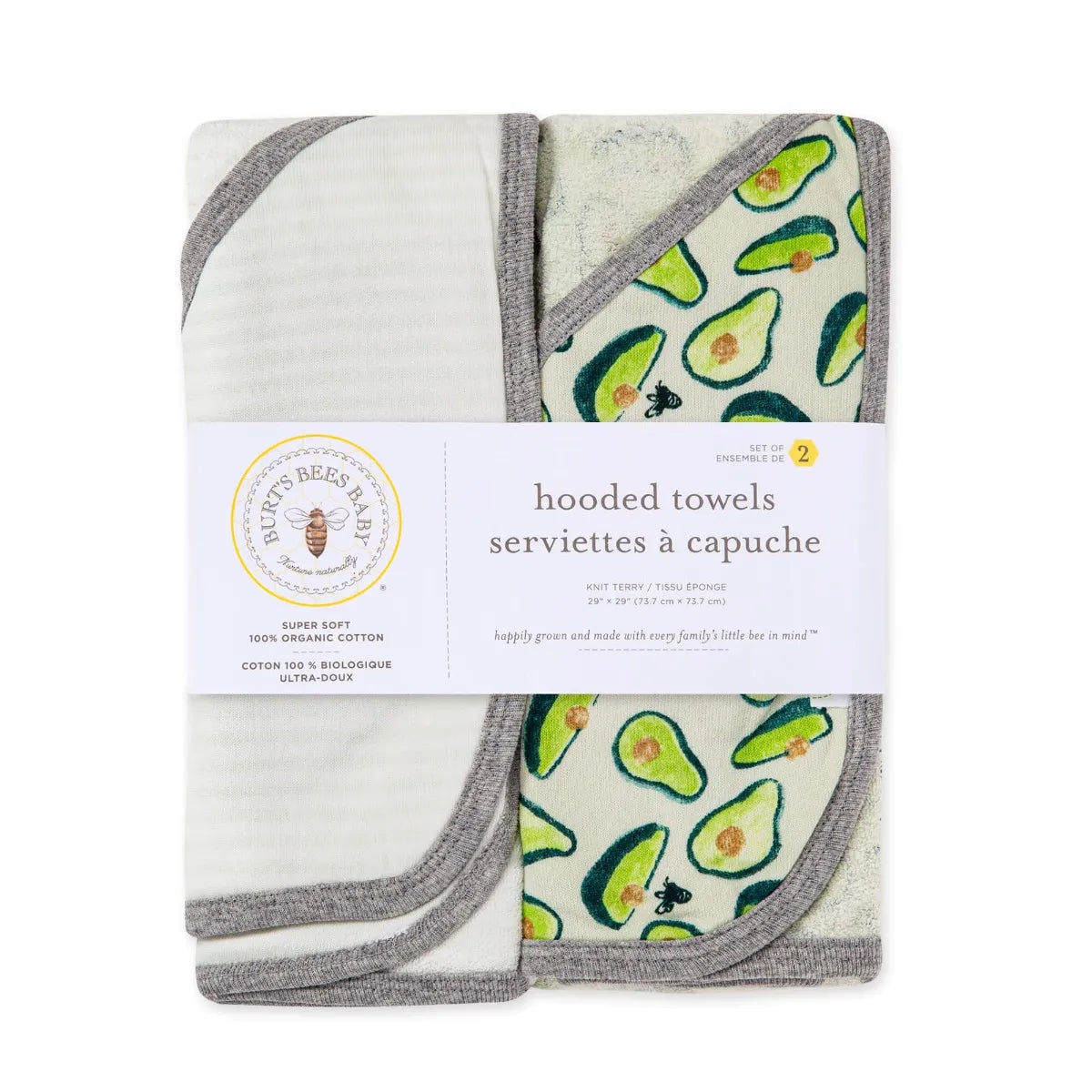 Burts Bees Baby Organic Cotton Hooded Towels 2-pack (Avo-Crazy)