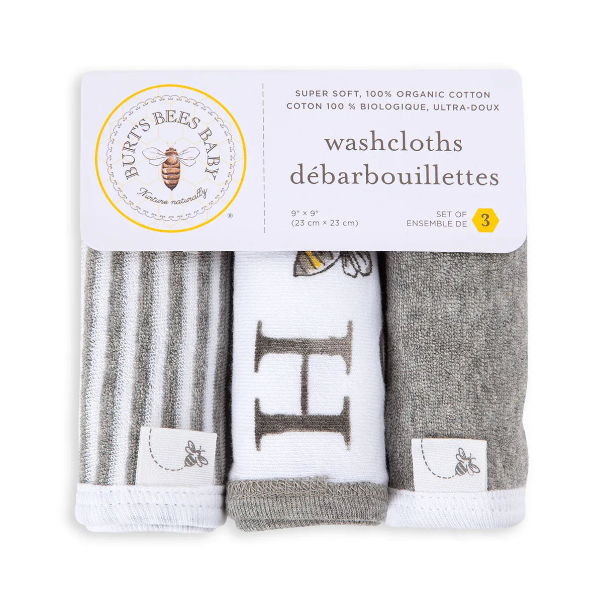Burts Bees Baby Organic Cotton Wash Cloths 3-pack (A-Bee-C)