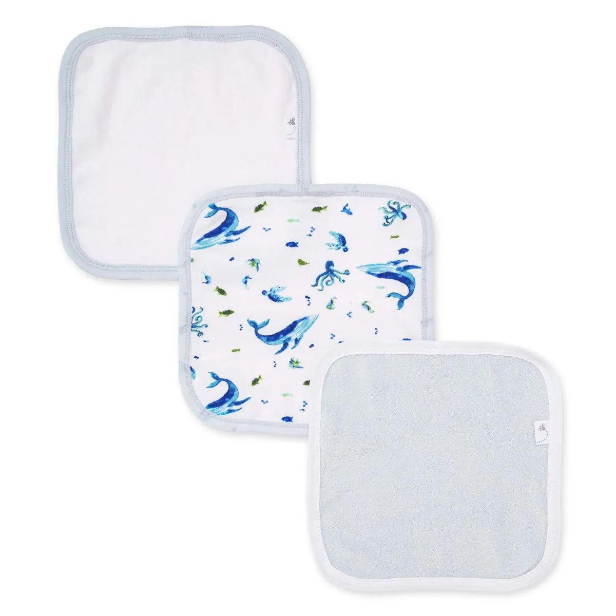 Burts Bees Baby Organic Cotton Wash Cloths 3-pack (Whale of a Tale)