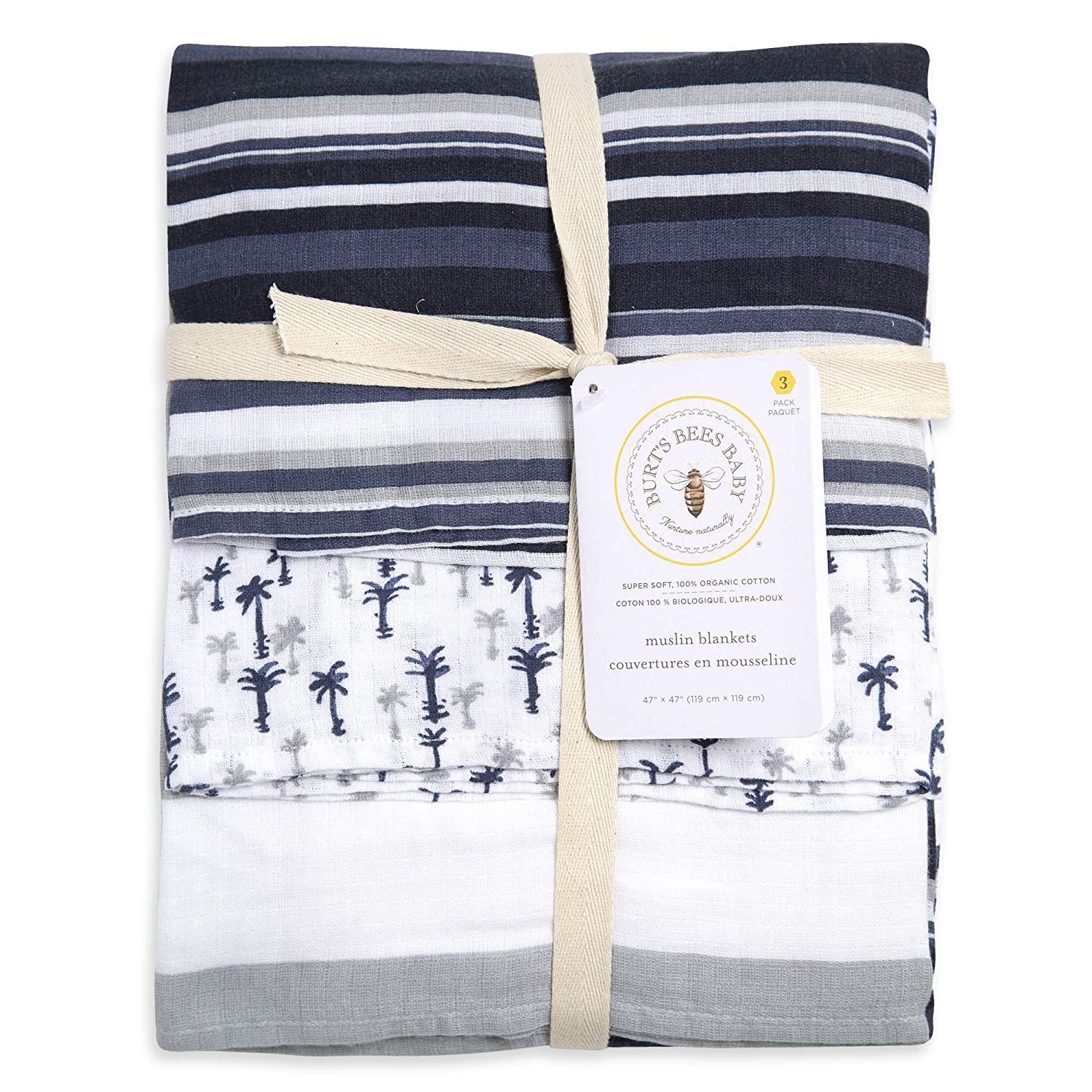 Burt's Bees Baby Organic Baby 3-pack Muslin Swaddle Blankets (Breezy Palms)
