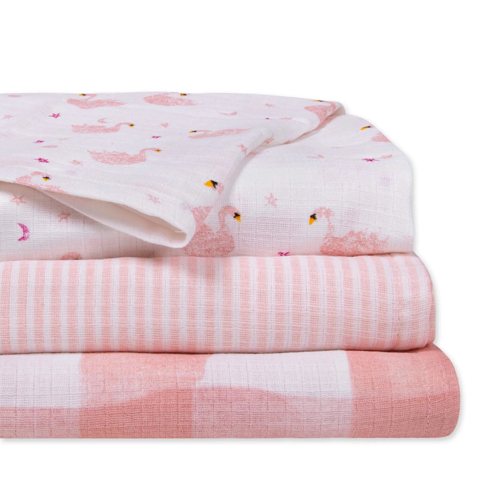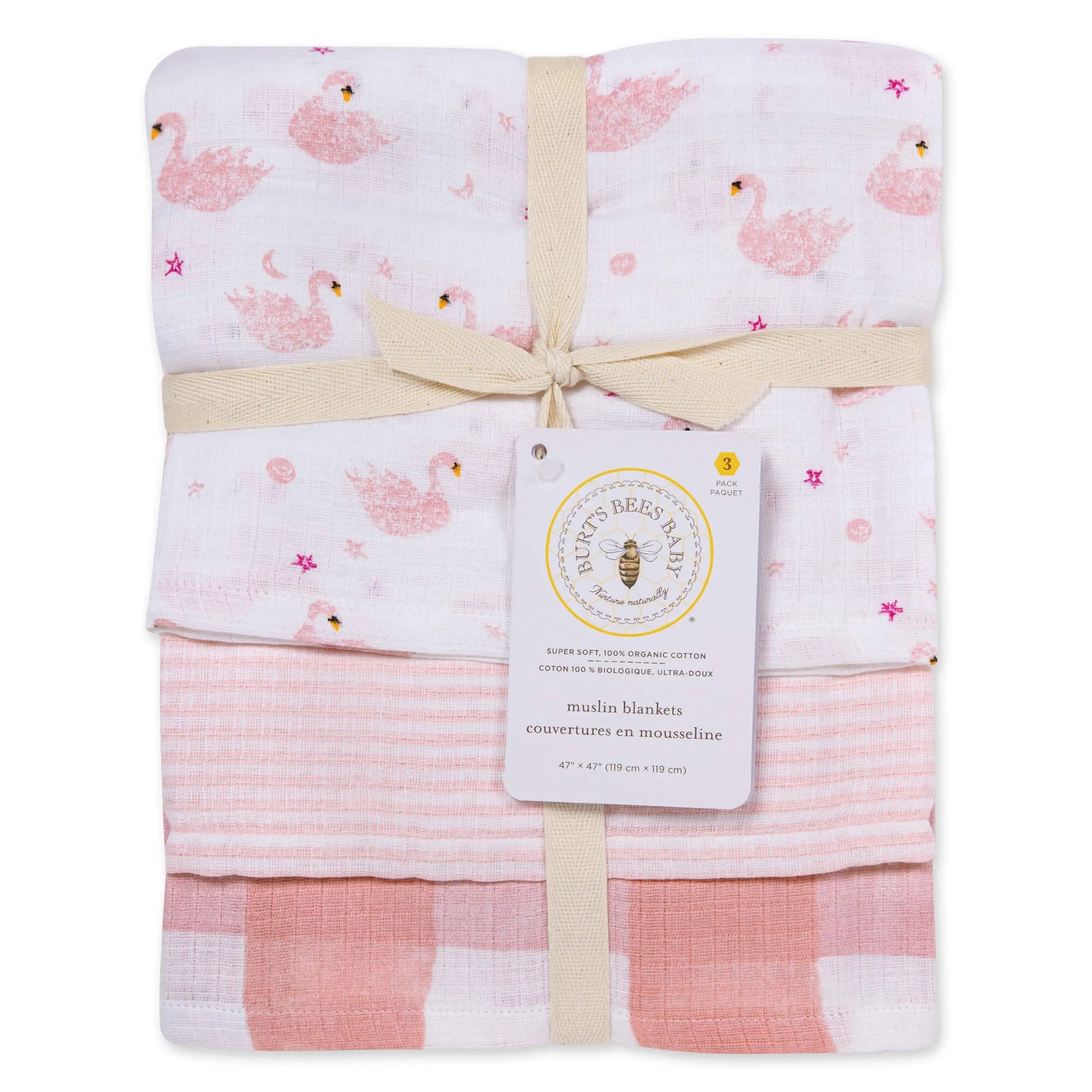Burts Bees Baby Organic Baby 3-pack Muslin Swaddle Blankets (Graceful Swans)